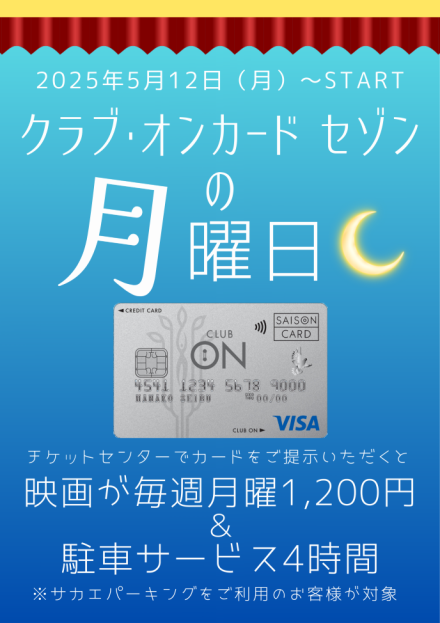 月曜日は是非!クラブ・オンカード セゾンをご利用していただき映画もお買い物もごゆっくりお楽しみください。