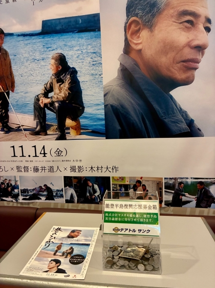 本作は“港町で生きる人々の強さと希望”を描いた作品であり、そのテーマを鑑み、少しでも力になりたいという思いから、第1弾として館内に、「能登半島復興応援募金箱」を設置いたしました。