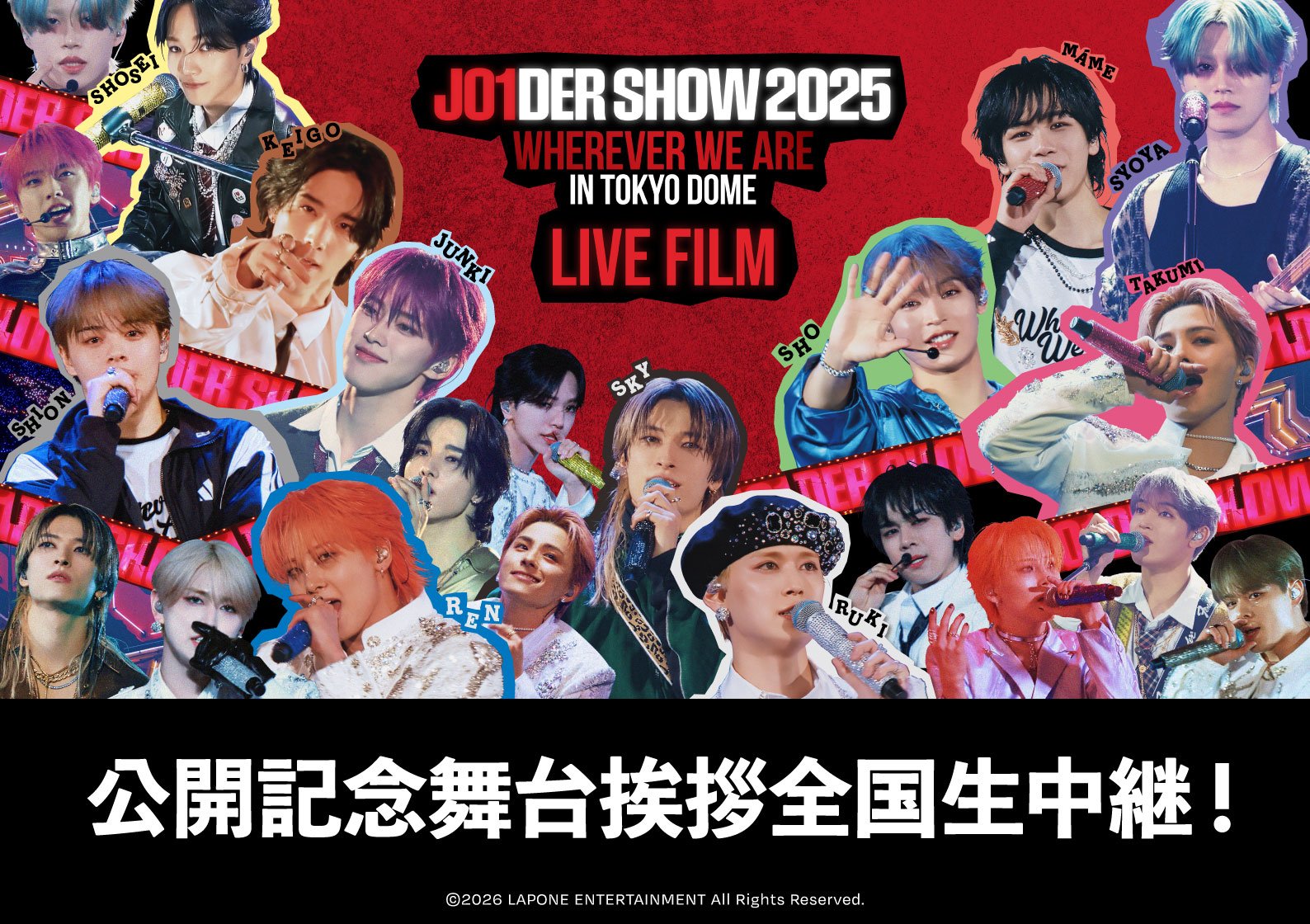 JO1初のライブ映画作品『JO1DER SHOW 2025 ‘WHEREVER WE ARE’ IN TOKYO DOME – LIVE FILM』公開を記念し、舞台挨拶中継付き上映会の実施が決定しました!