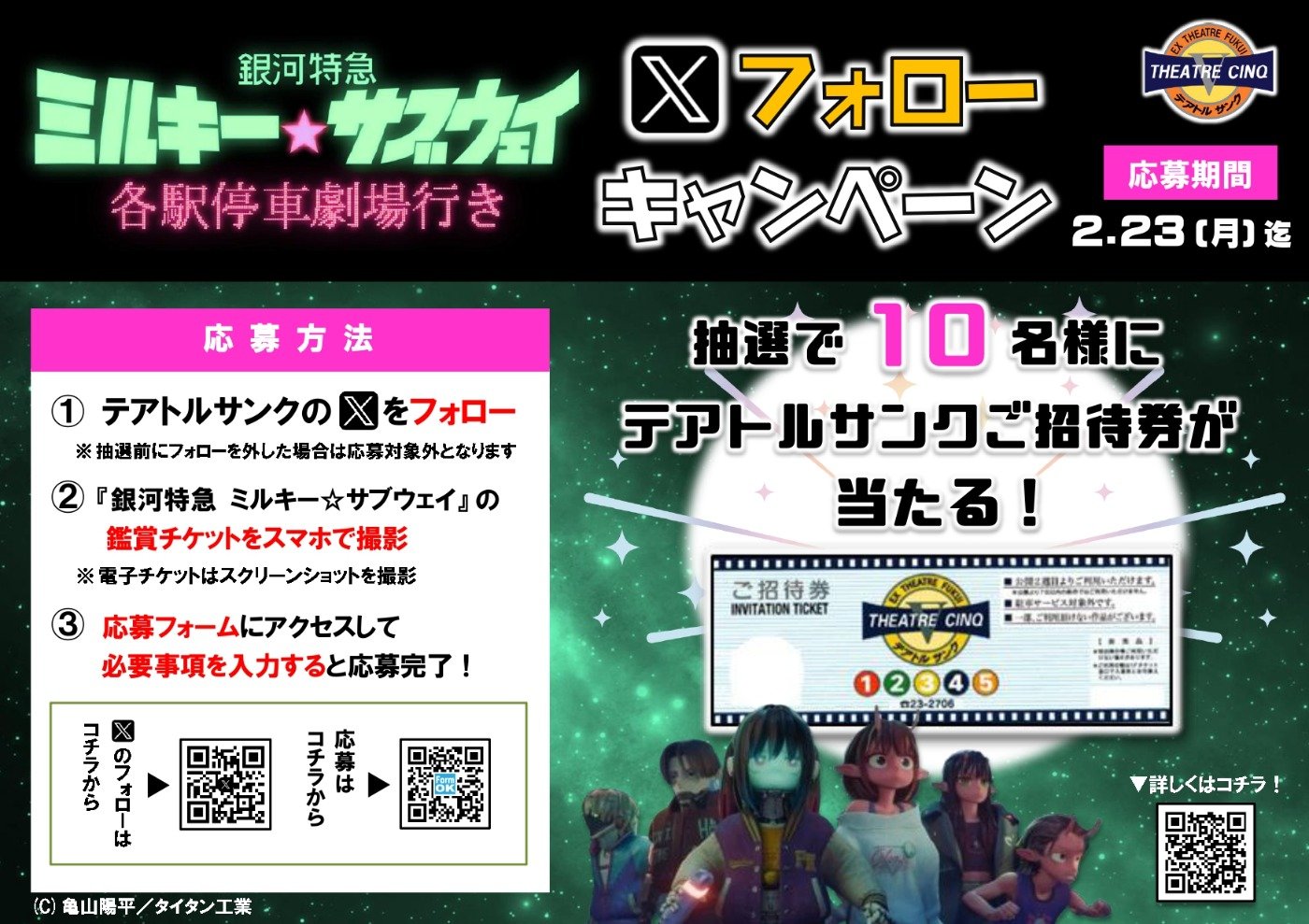 2.6(金)~『銀河特急 ミルキー☆サブウェイ 各駅停車劇場行き』Xフォローキャンペーン【テアトルサンク公式X】
