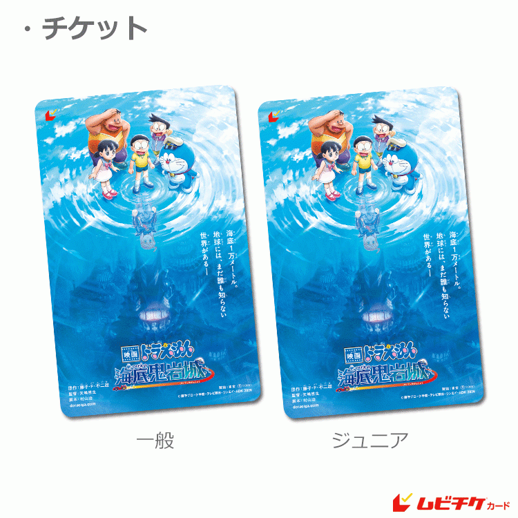 2026.2.27(金)公開『ドラえもん 新・のび太の海底鬼岩城』 チケットセンターで販売開始! 【一般:1,400円 税込 】ムビチケカード 【小人: 800円 税込 】ムビチケカード 特典 いくぞ!!バギードラ ※前売券1枚ご購入につき、特典を1つお渡しいたします。 ※特典がなくなり次第、前売券のみの販売となります。 ※前売券のお支払いは現金のみとなっております。予めご了承ください。