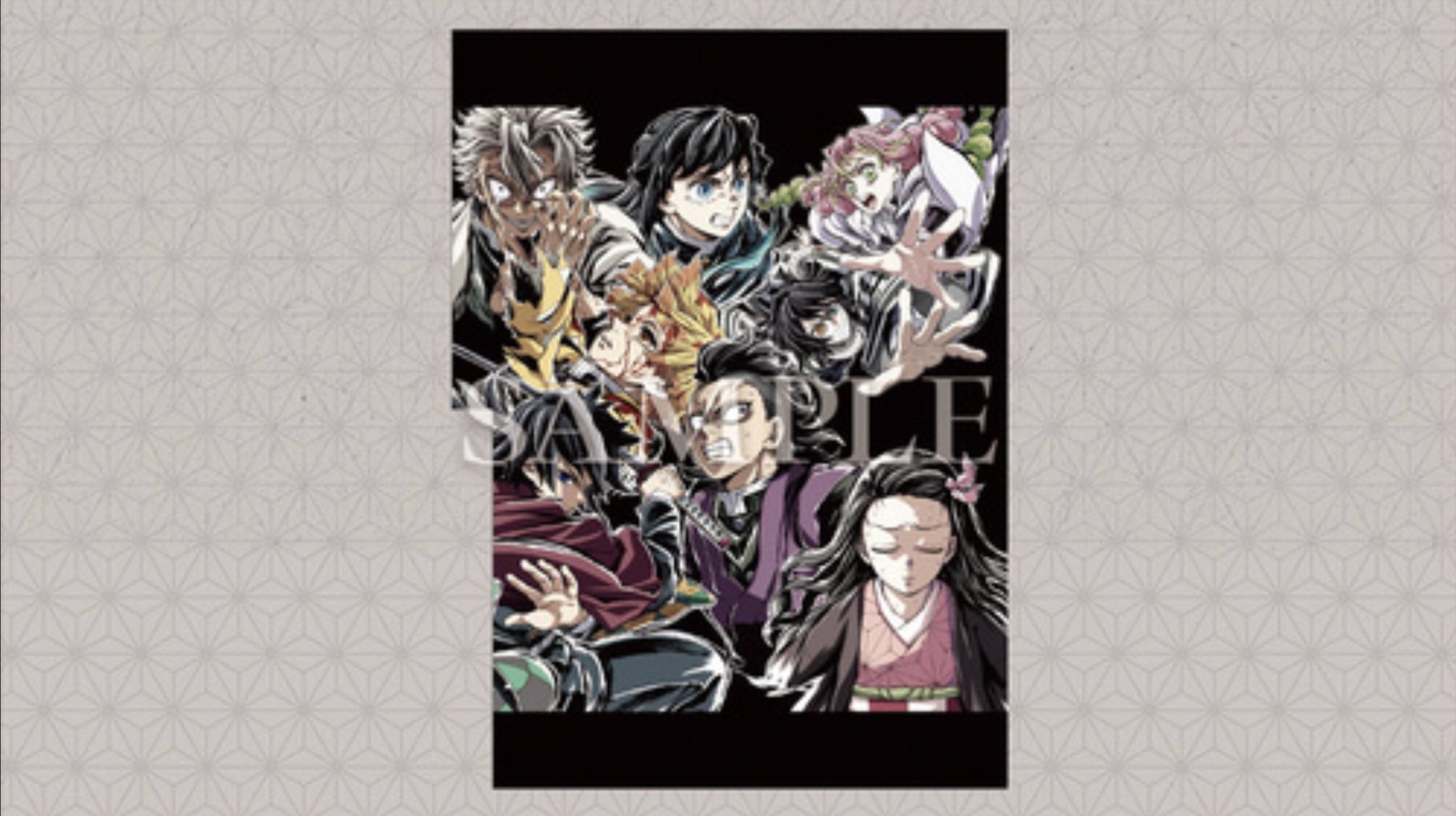 第一弾は竈門炭治郎・嘴平伊之助・栗花落カナヲ・胡蝶しのぶ・悲鳴嶼行冥のイラストです。